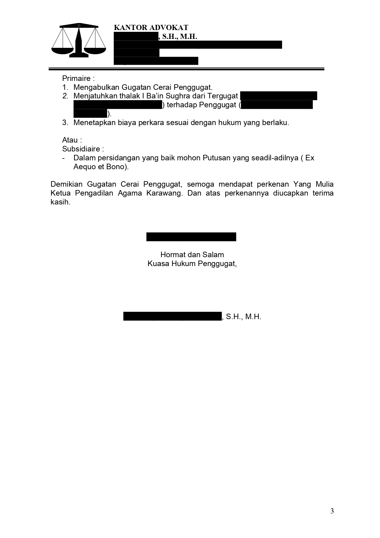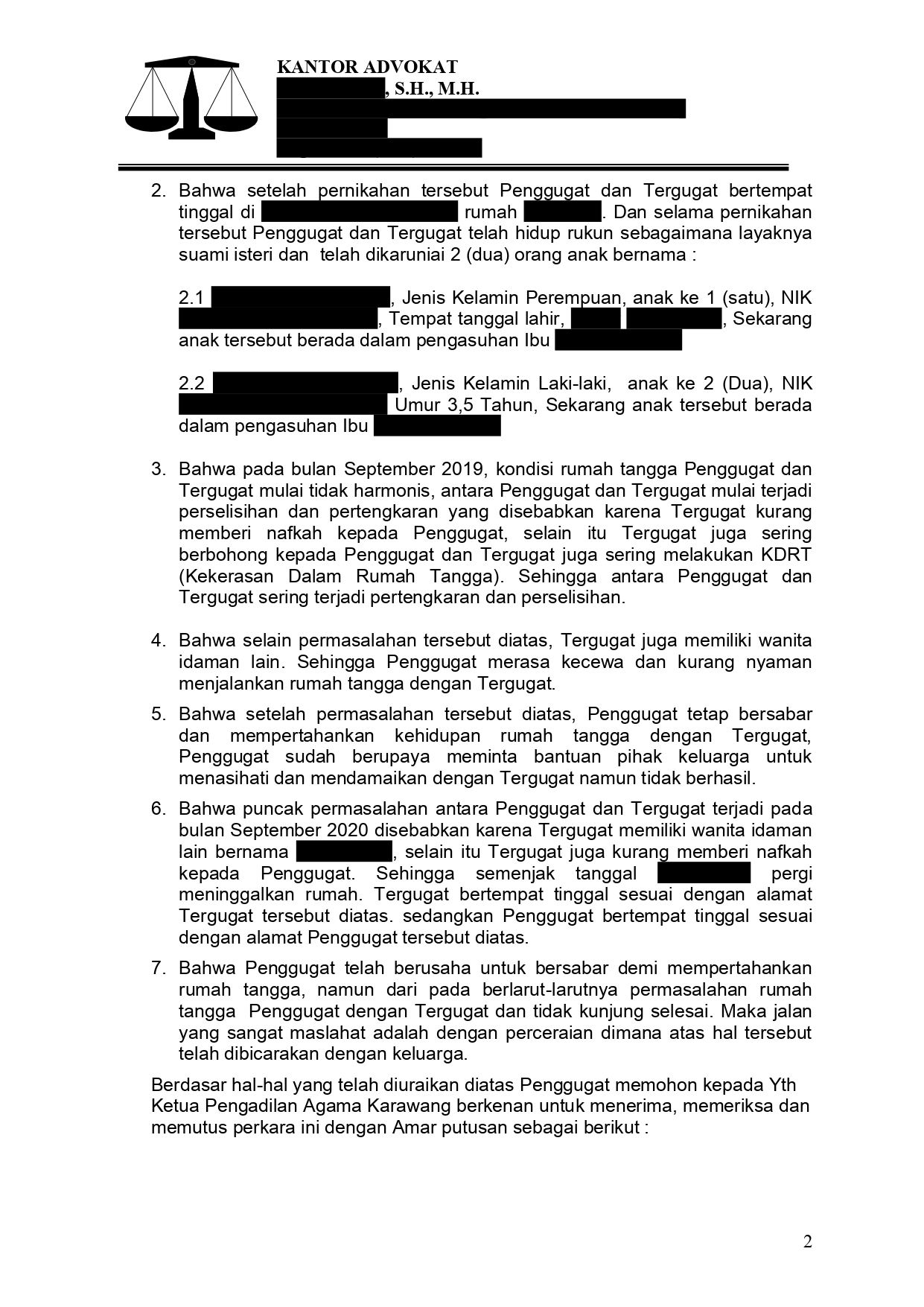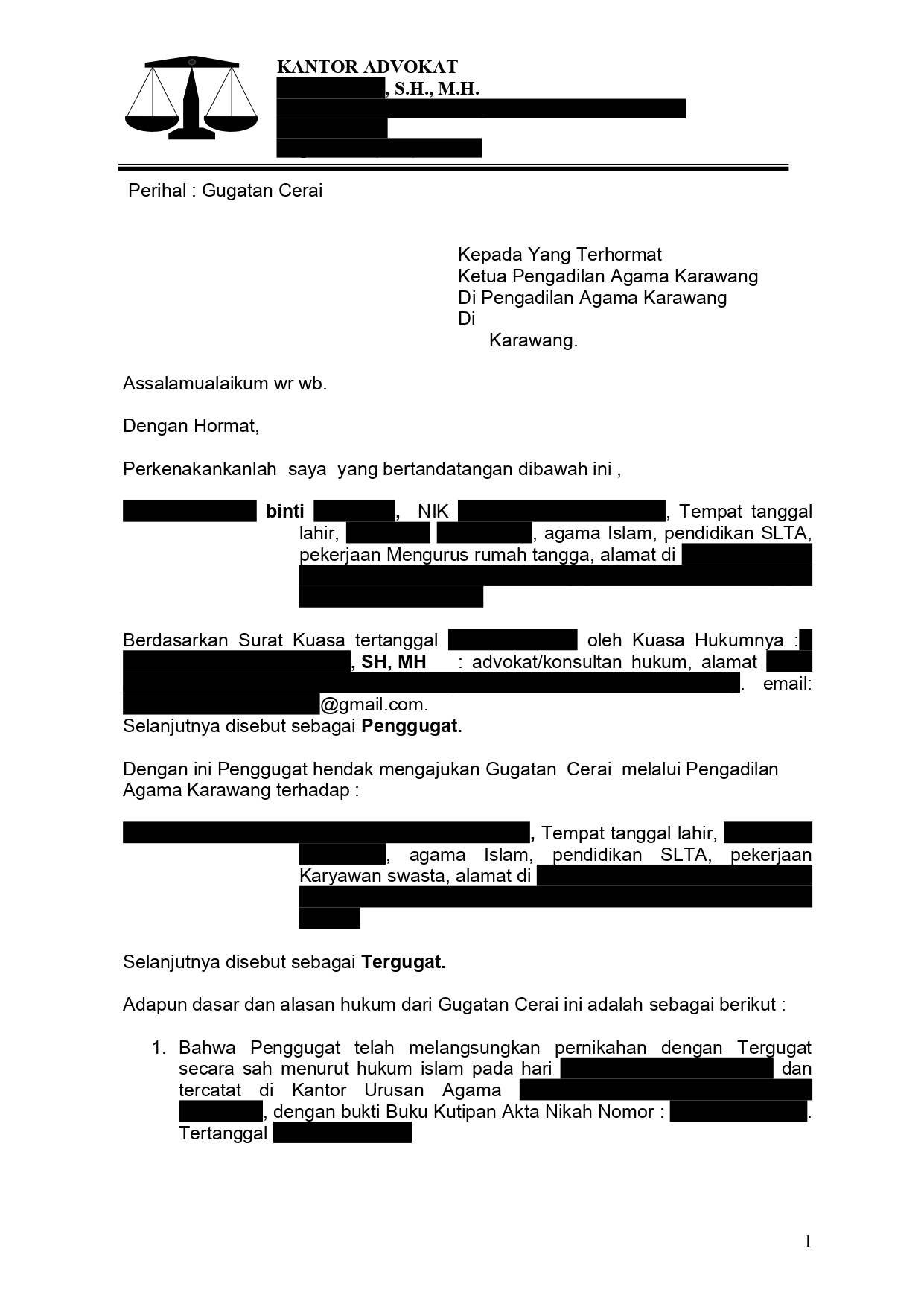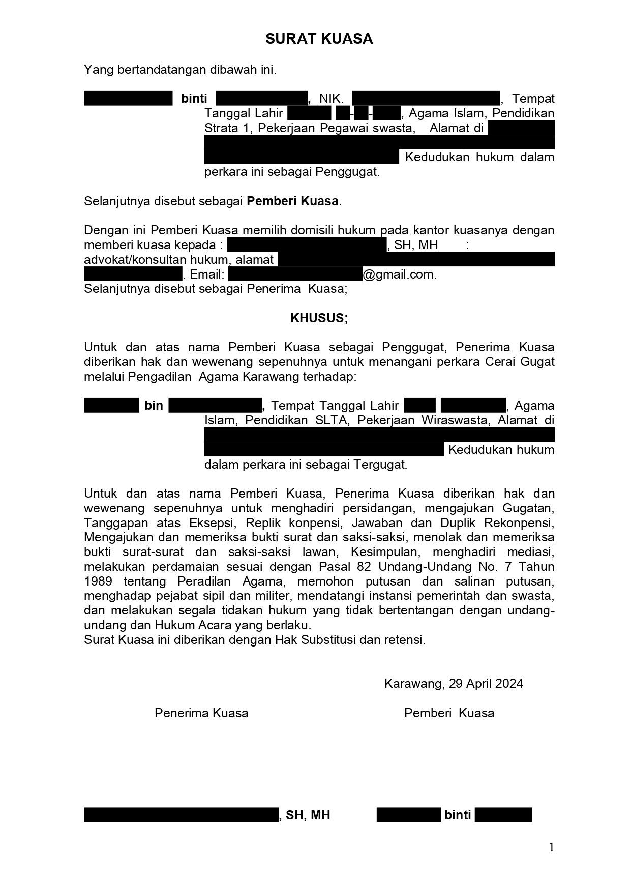 A collection of anonymized legal documents—including a Power of Attorney and a civil lawsuit petition—that I drafted based on Indonesian legal standards.